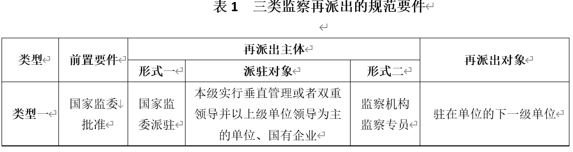 新《監(jiān)察法》第12條增加三種類型的監(jiān)察再派出制度,其規(guī)范要件互有異同,具體如表1所示。