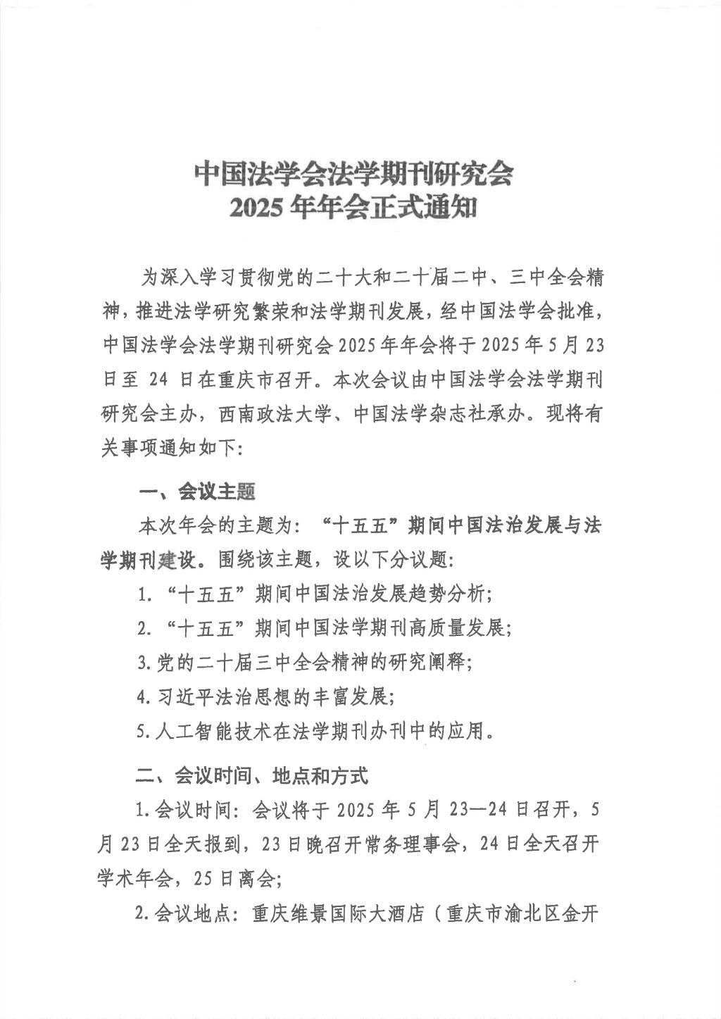 中國法學(xué)會法學(xué)期刊研究會2025年年會正式通知