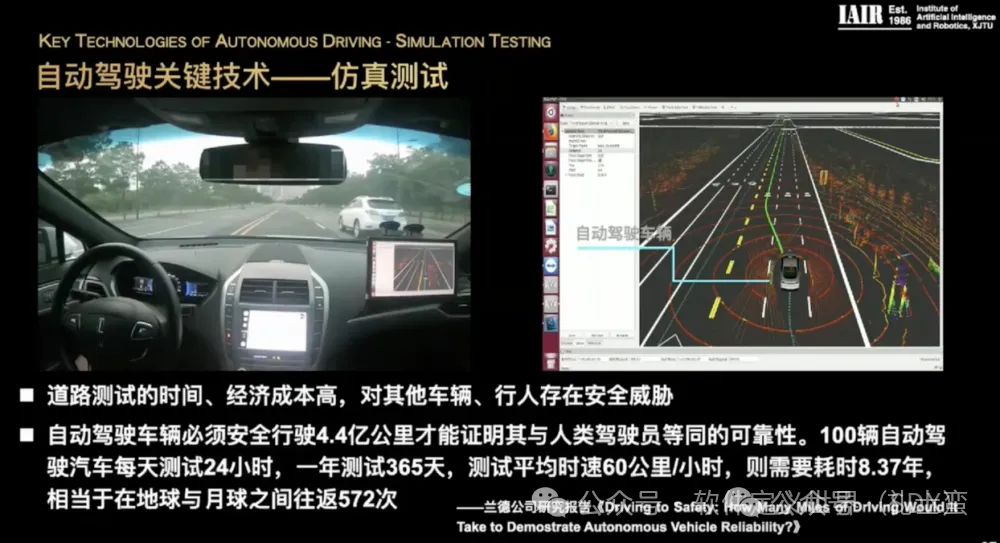 仿真測試也是自動駕駛重要的關(guān)鍵技術(shù)之一,自動駕駛汽車在大規(guī)模商業(yè)化應(yīng)用前需要進行大量的測試,相關(guān)研究報告指出:在不犯錯誤的情況下,自動駕駛汽車需要行駛4.4億公里,才能證明其在車禍致死率和人類駕駛員的水平相當(dāng)。