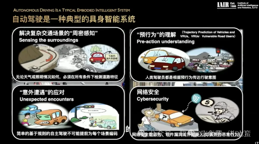 自動駕駛是開放環(huán)境中一類重要典型具身智能系統(tǒng),在復(fù)雜交通環(huán)境下,自動駕駛安全要有可靠的駕駛行為。