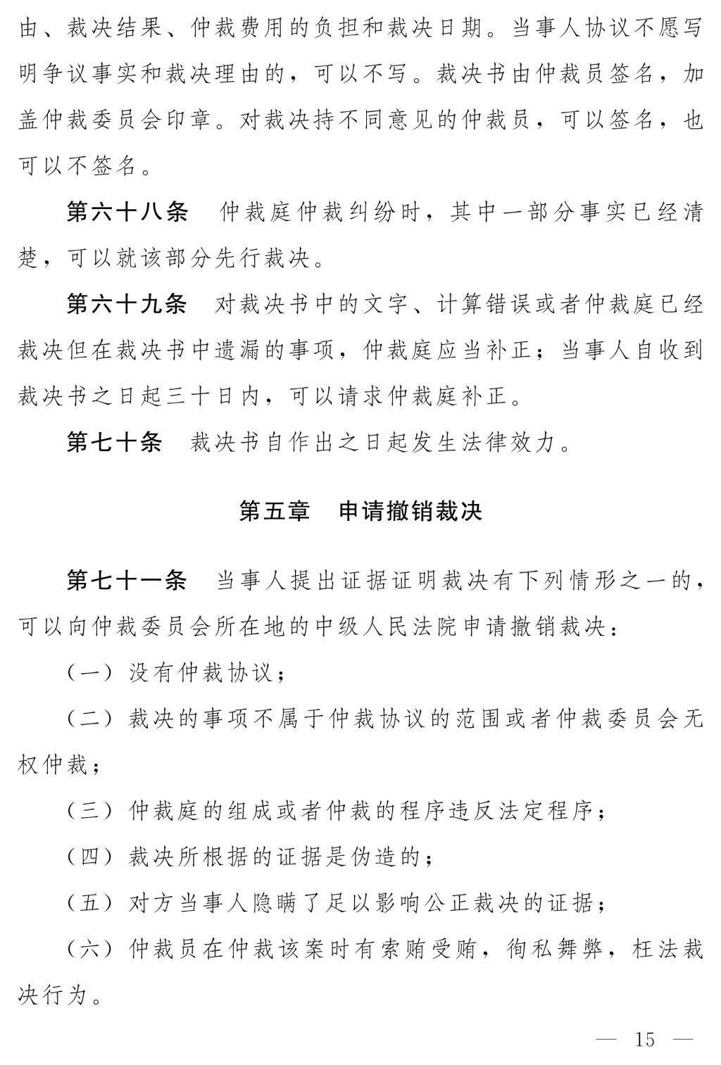 十四屆全國人大常委會第十五次會議對《中華人民共和國仲裁法(修訂草案二次審議稿)》進行了審議。現(xiàn)將《中華人民共和國仲裁法(修訂草案二次審議稿)》公布,社會公眾可以直接登錄中國人大網(wǎng)(www.npc.gov.cn)或國家法律法規(guī)數(shù)據(jù)庫(flk.npc.gov.cn)提出意見,也可以將意見寄送全國人大常委會法制工作委員會(北京市西城區(qū)前門西大街1號,郵編:100805。信封上請注明仲裁法修訂草案二次審議稿征求意見)。征求意見期限為30日。