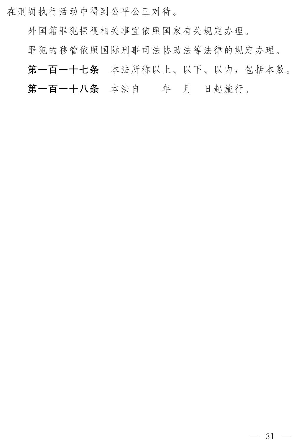 十四屆全國人大常委會第十七次會議對《中華人民共和國監(jiān)獄法(修訂草案二次審議稿)》進(jìn)行了審議。現(xiàn)將《中華人民共和國監(jiān)獄法(修訂草案二次審議稿)》公布,社會公眾可以直接登錄中國人大網(wǎng)(www.npc.gov.cn)或國家法律法規(guī)數(shù)據(jù)庫(flk.npc.gov.cn)提出意見,也可以將意見寄送全國人大常委會法制工作委員會(北京市西城區(qū)前門西大街1號,郵編:100805。信封上請注明監(jiān)獄法修訂草案二次審議稿征求意見)。征求意見期限為30日。