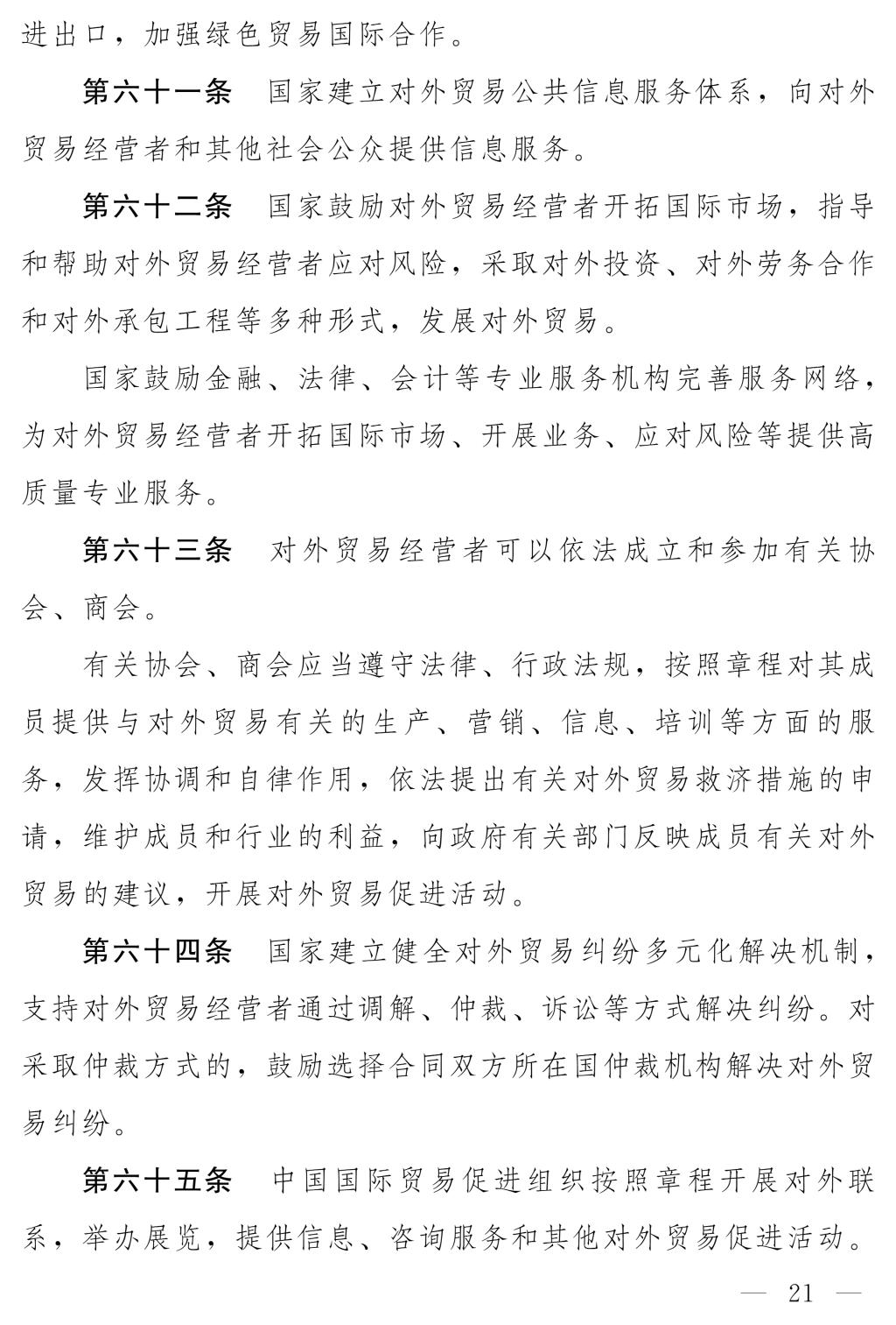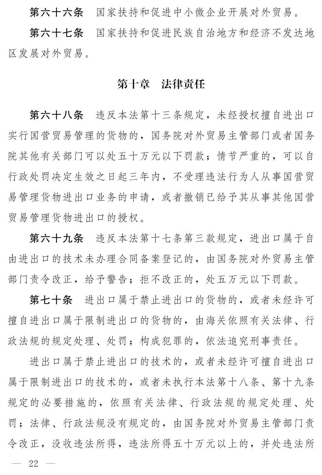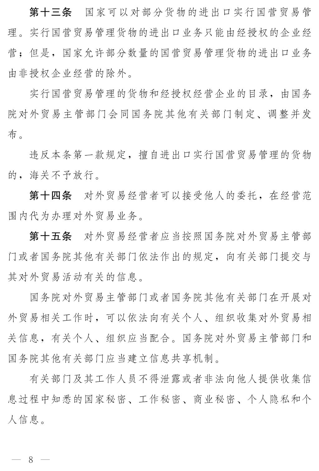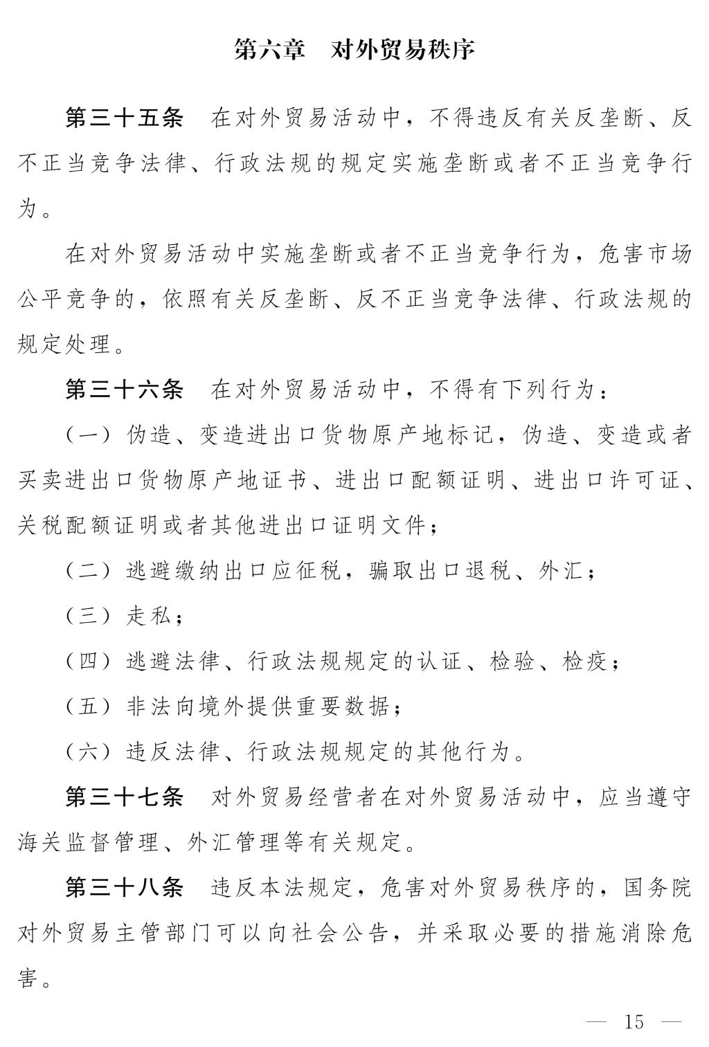 十四屆全國人大常委會第十七次會議對《中華人民共和國對外貿(mào)易法(修訂草案)》進行了審議。現(xiàn)將《中華人民共和國對外貿(mào)易法(修訂草案)》公布,社會公眾可以直接登錄中國人大網(wǎng)(www.npc.gov.cn)或國家法律法規(guī)數(shù)據(jù)庫(flk.npc.gov.cn)提出意見,也可以將意見寄送全國人大常委會法制工作委員會(北京市西城區(qū)前門西大街1號,郵編:100805。信封上請注明對外貿(mào)易法修訂草案征求意見)。征求意見期限為30日。