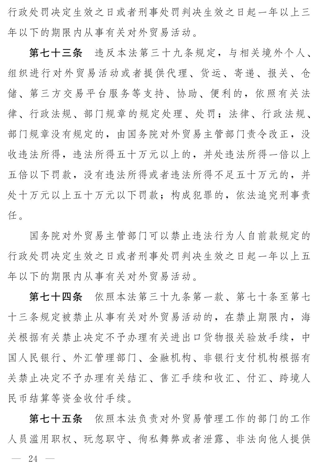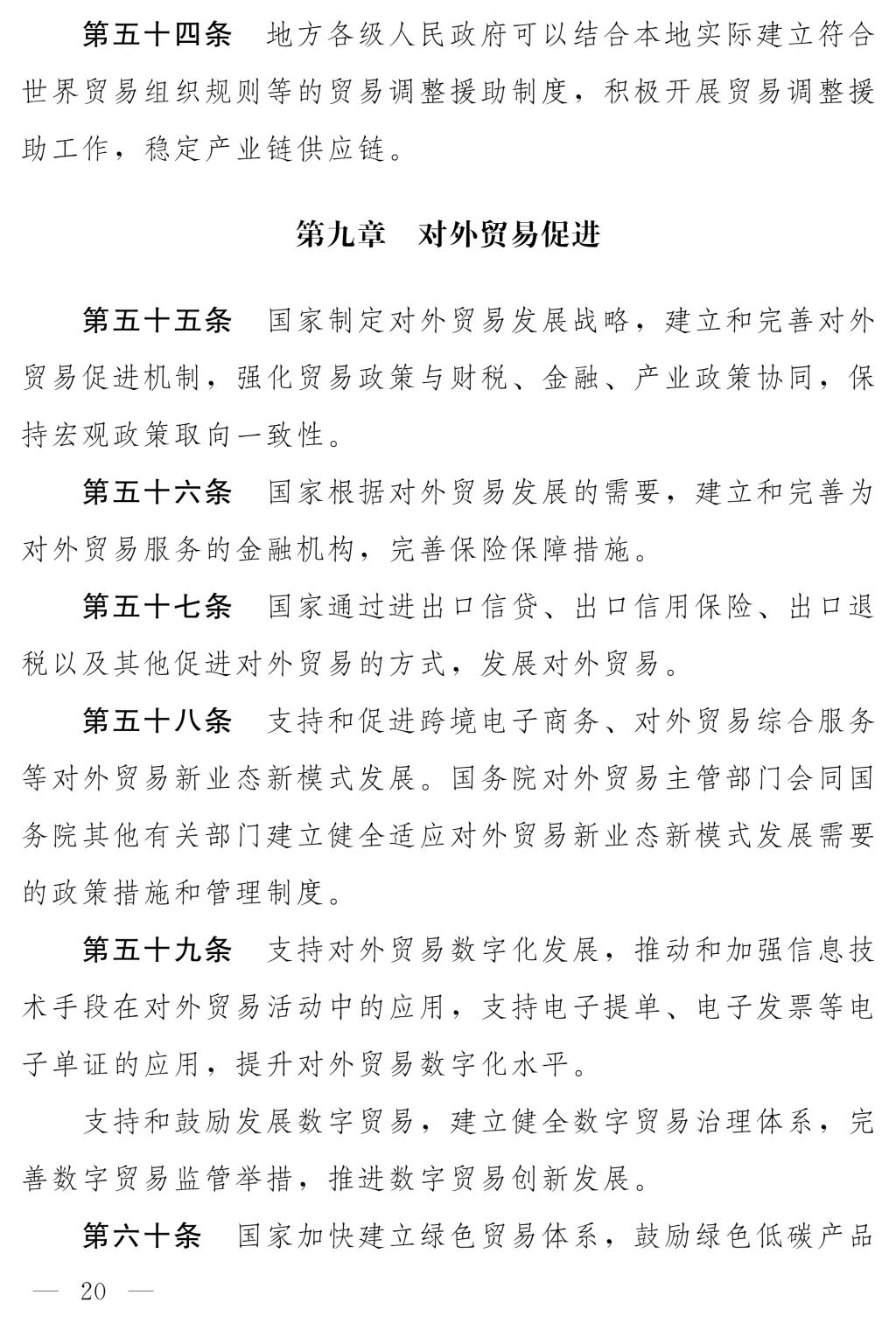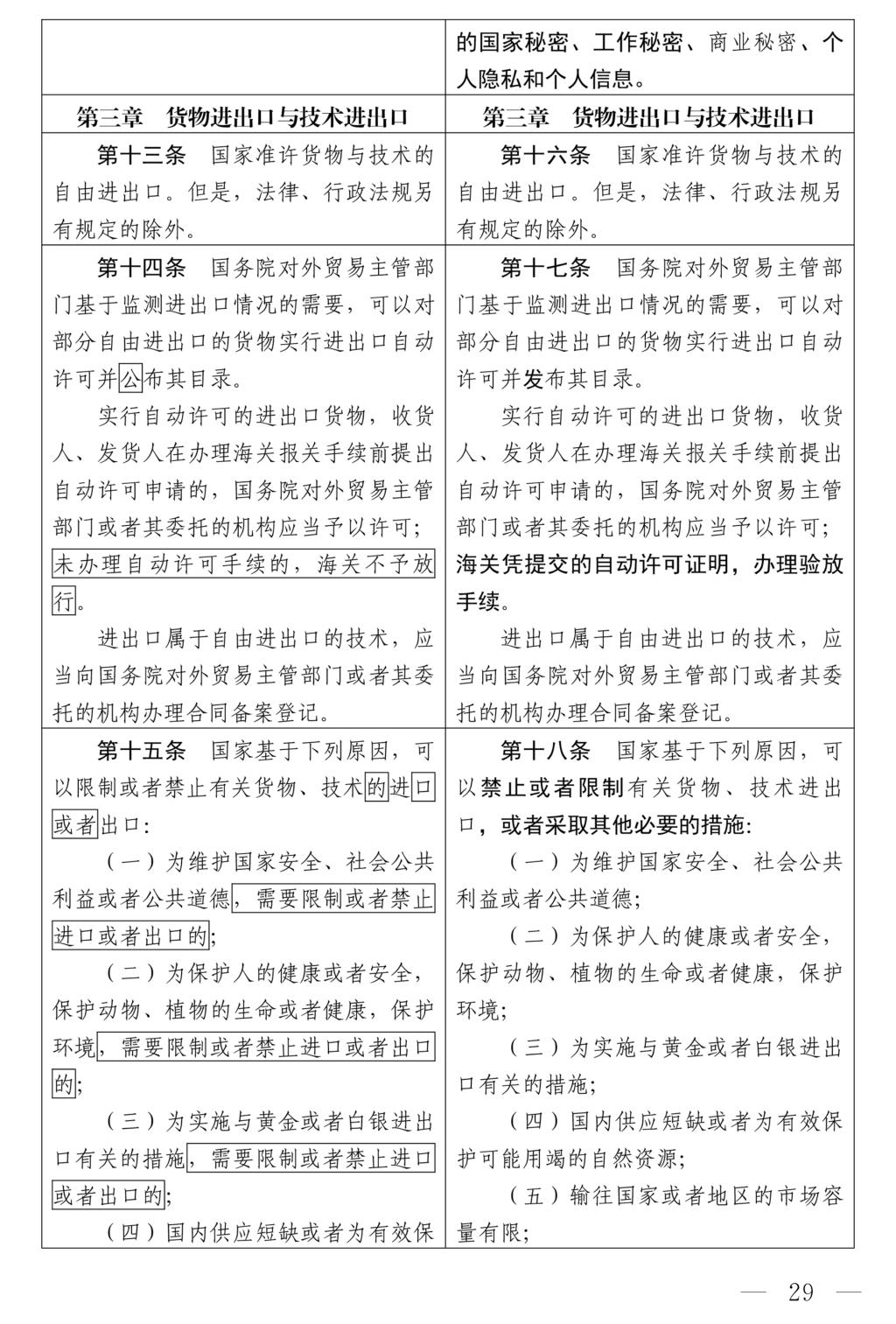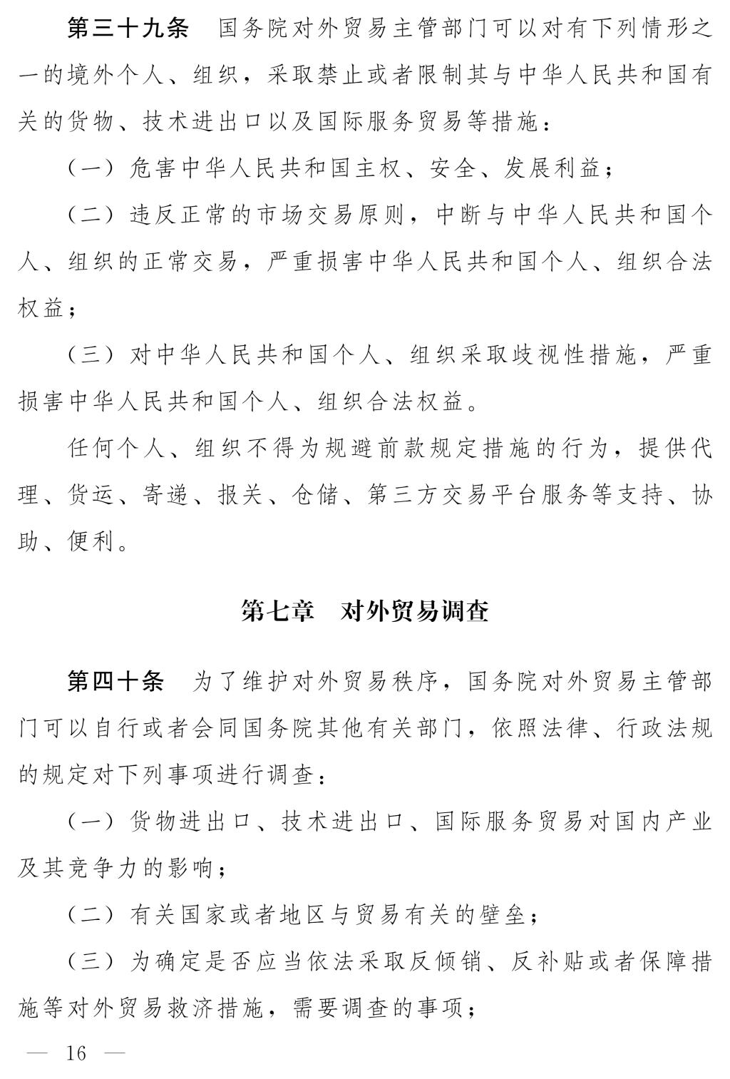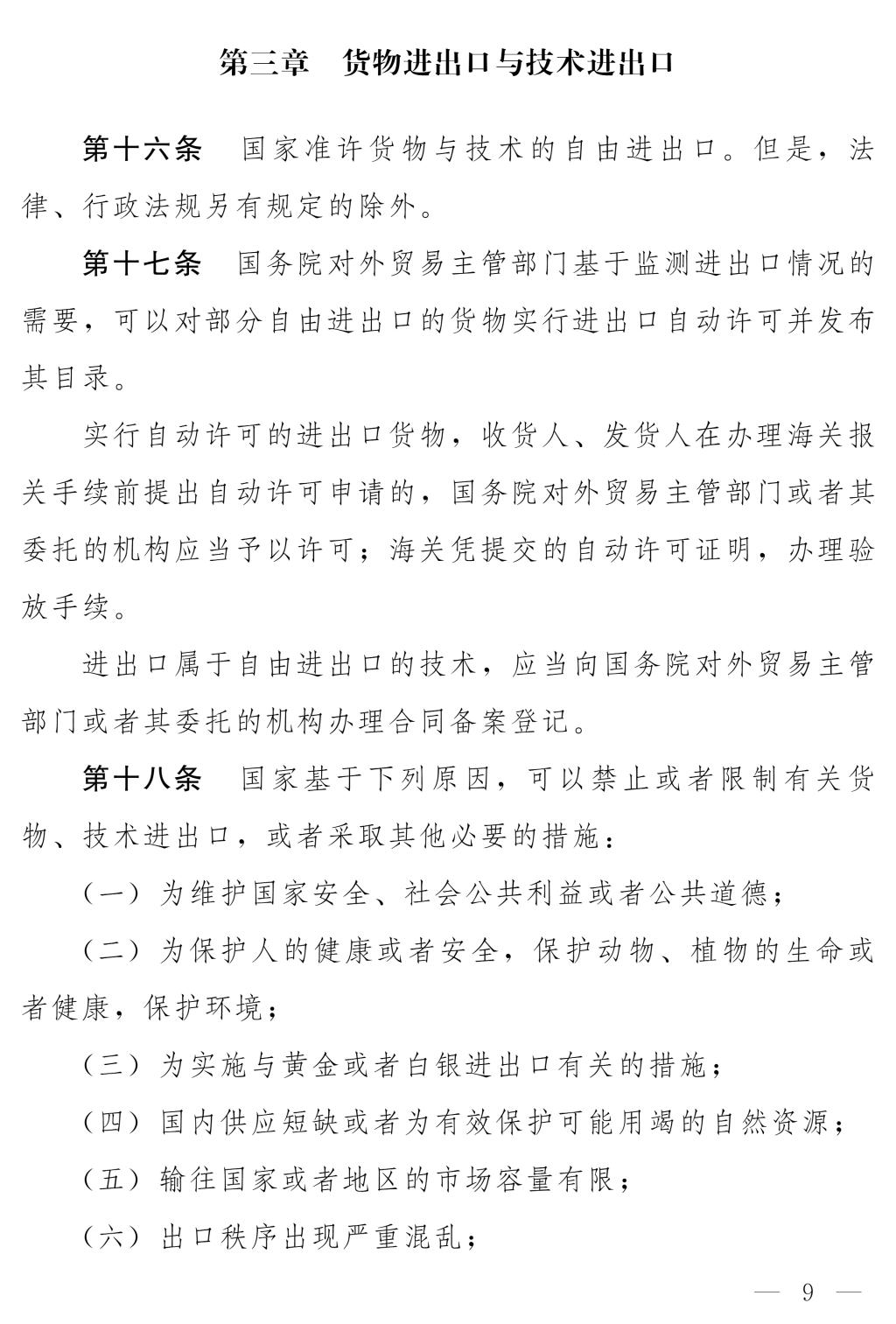 十四屆全國人大常委會第十七次會議對《中華人民共和國對外貿(mào)易法(修訂草案)》進行了審議。現(xiàn)將《中華人民共和國對外貿(mào)易法(修訂草案)》公布,社會公眾可以直接登錄中國人大網(wǎng)(www.npc.gov.cn)或國家法律法規(guī)數(shù)據(jù)庫(flk.npc.gov.cn)提出意見,也可以將意見寄送全國人大常委會法制工作委員會(北京市西城區(qū)前門西大街1號,郵編:100805。信封上請注明對外貿(mào)易法修訂草案征求意見)。征求意見期限為30日。