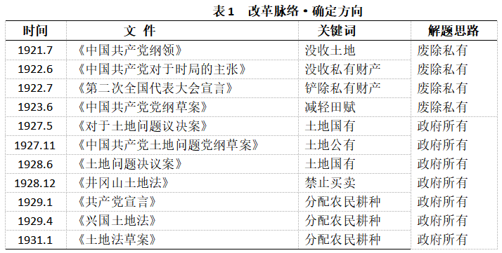 在進(jìn)行農(nóng)村土地產(chǎn)權(quán)改革的問(wèn)題上,中國(guó)共產(chǎn)黨面臨的第一個(gè)命題是土地所有權(quán)的歸屬問(wèn)題。在探索的過(guò)程中,中國(guó)共產(chǎn)黨通過(guò)對(duì)革命形勢(shì)的研判,呈現(xiàn)出了“廢除私有—政府所有—農(nóng)民所有—集體所有”的改革思路。