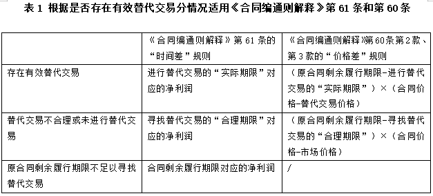 在違約方預(yù)期不履行合同情況下,如果替代交易開始履行的“實際期限”或“合理期限”與原合同停止履行的時點重合,那么就不存在兩次給付的“時間差”,也無需適用繼續(xù)性合同可得利益計算的特殊規(guī)則。具體而言,在期前拒絕履行的場合,違約方聲明將在一定期限后停止履行合同,如果非違約方在該期限到來前已經(jīng)安排了替代交易,并且替代交易在違約方停止履行時立即開始履行,或者法院認(rèn)定違約方作出聲明到實際停止履行的期限足以使非違約方安排上述替代交易,那么非違約方就不存在兩次給付“時間差”造成的損失,也不存在《合同編通則解釋》第61條的適用問題。