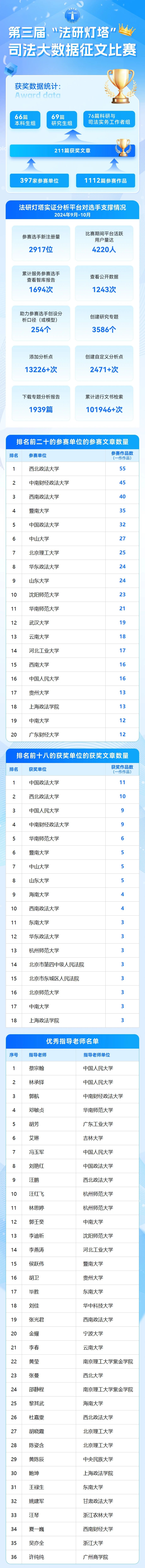 日前,由中國(guó)司法大數(shù)據(jù)研究院主辦的第三屆“法研燈塔”司法大數(shù)據(jù)征文比賽正式落下帷幕,歷經(jīng)廣泛征稿、初審、專家匿名交叉復(fù)審、終審、入圍公示和信息核對(duì),共計(jì)211篇文章斬獲獎(jiǎng)項(xiàng)。