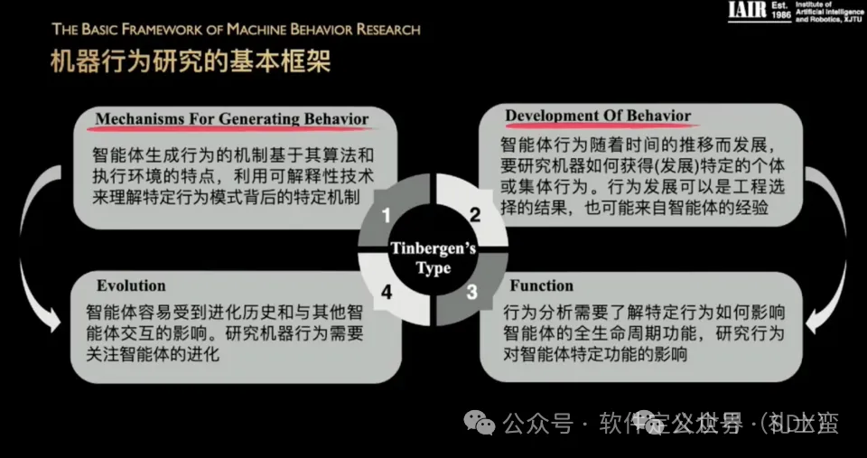 4、行為的進化,智能體容易受到進化歷史和與其他智能體交互的影響,從這個角度來看,研究機器行為需要關(guān)注智能體的進化。