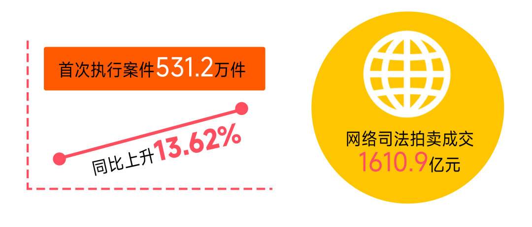 執(zhí)行案件辦理情況。人民法院不斷深化執(zhí)行機(jī)制改革,促推“切實(shí)解決執(zhí)行難”,積極推動將勝訴當(dāng)事人“紙上權(quán)益”兌現(xiàn)為“真金白銀”,積極服務(wù)法治社會、誠信社會建設(shè)。受理首次執(zhí)行案件531.2萬件,同比上升13.62%。執(zhí)行完畢率和執(zhí)行到位率分別為41.96%和54.38%,保持高位運(yùn)行。新納入失信名單103.3萬人次,同比下降2.46%,連續(xù)五個季度下降;111.58萬人次通過信用修復(fù)回歸市場,信用修復(fù)工作的科學(xué)管理水平穩(wěn)步提升。網(wǎng)絡(luò)司法拍賣成交1610.9億元,上拍量、成交量、成交率同比上升,財產(chǎn)處置工作成效持續(xù)提升。