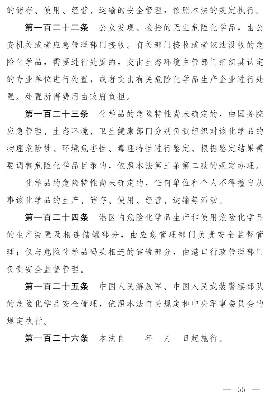 十四屆全國人大常委會第十七次會議對《中華人民共和國危險化學品安全法(草案二次審議稿)》進行了審議?,F(xiàn)將《中華人民共和國危險化學品安全法(草案二次審議稿)》公布,社會公眾可以直接登錄中國人大網(wǎng)(www.npc.gov.cn)或國家法律法規(guī)數(shù)據(jù)庫(flk.npc.gov.cn)提出意見,也可以將意見寄送全國人大常委會法制工作委員會(北京市西城區(qū)前門西大街1號,郵編:100805。信封上請注明危險化學品安全法草案二次審議稿征求意見)。征求意見期限為30日。