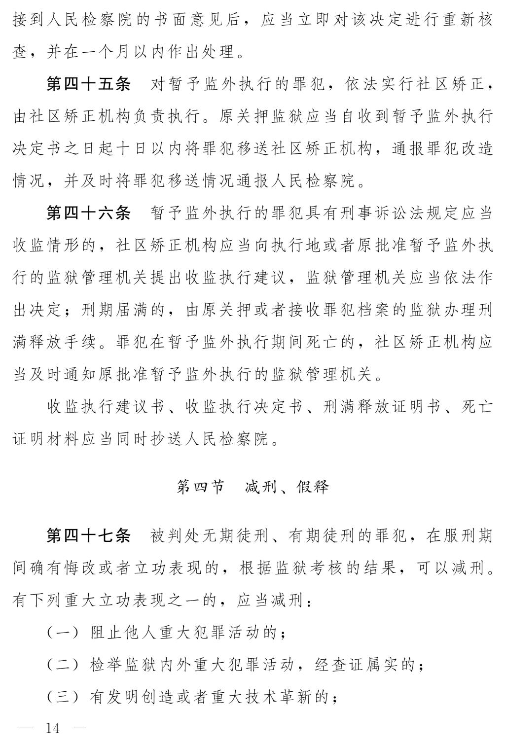十四屆全國人大常委會第十七次會議對《中華人民共和國監(jiān)獄法(修訂草案二次審議稿)》進(jìn)行了審議。現(xiàn)將《中華人民共和國監(jiān)獄法(修訂草案二次審議稿)》公布,社會公眾可以直接登錄中國人大網(wǎng)(www.npc.gov.cn)或國家法律法規(guī)數(shù)據(jù)庫(flk.npc.gov.cn)提出意見,也可以將意見寄送全國人大常委會法制工作委員會(北京市西城區(qū)前門西大街1號,郵編:100805。信封上請注明監(jiān)獄法修訂草案二次審議稿征求意見)。征求意見期限為30日。