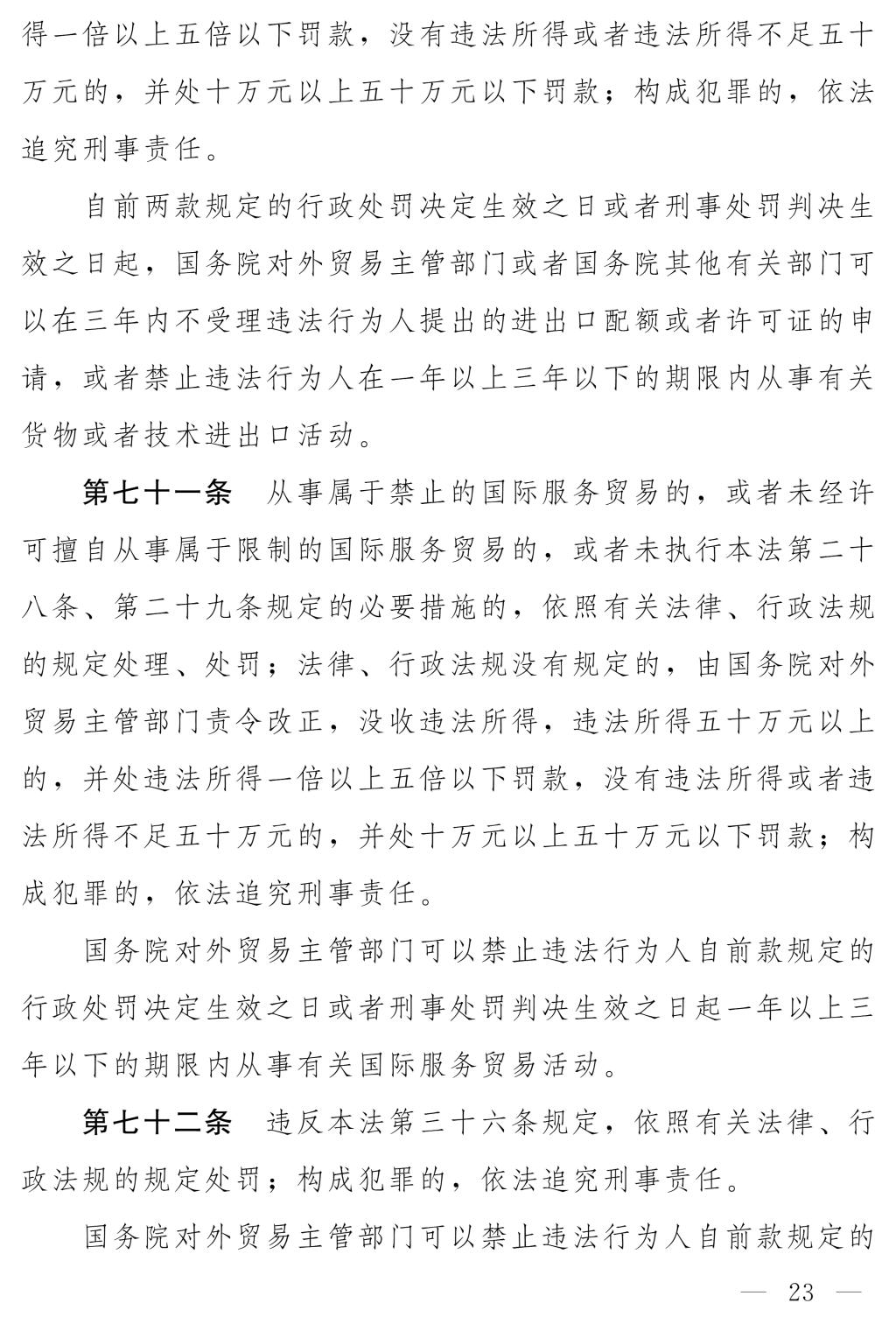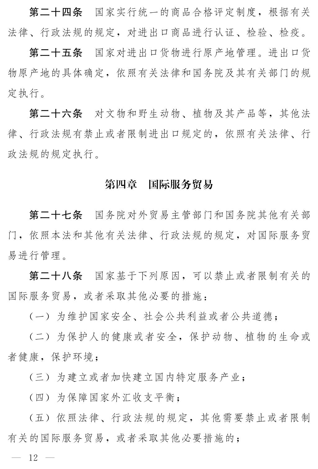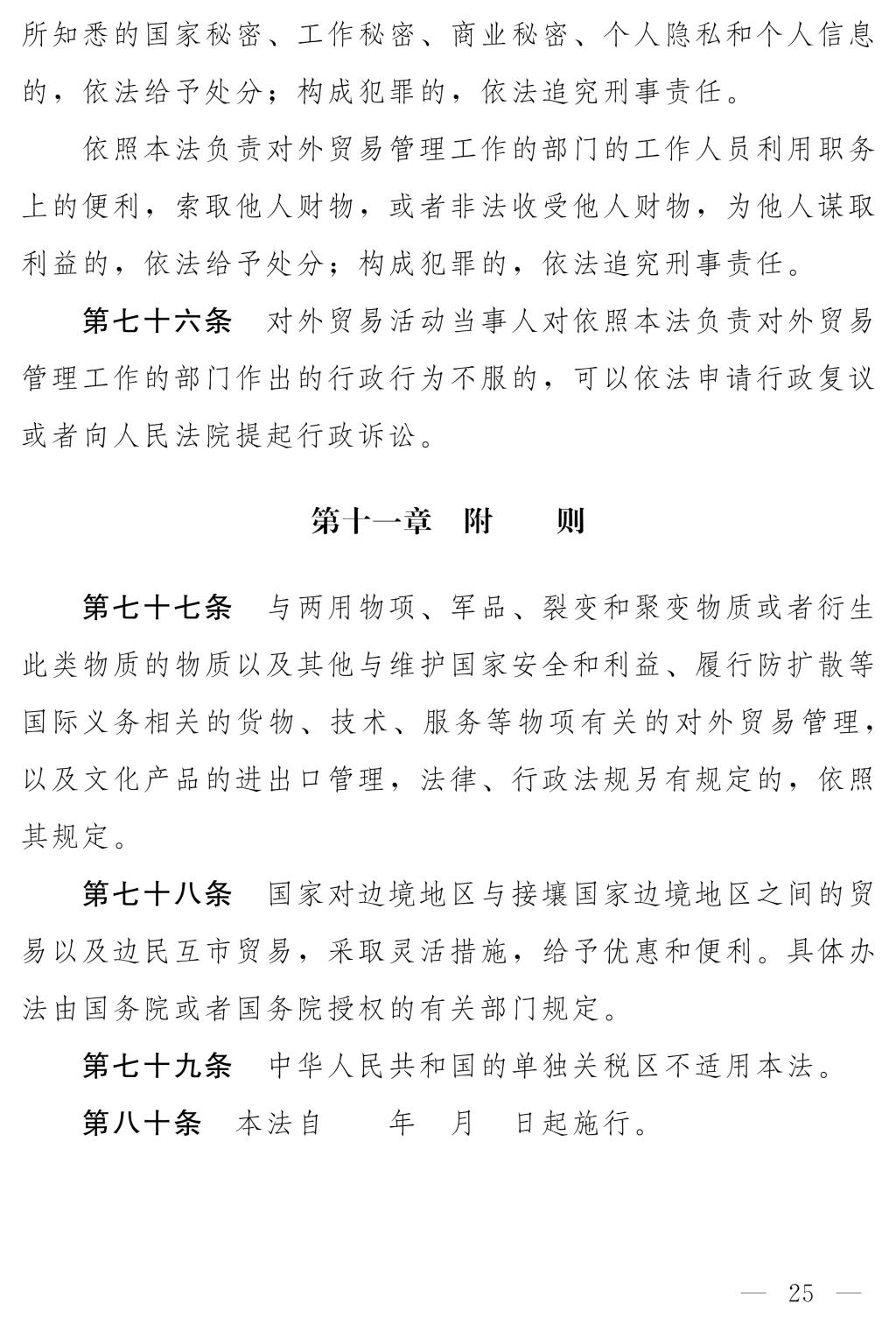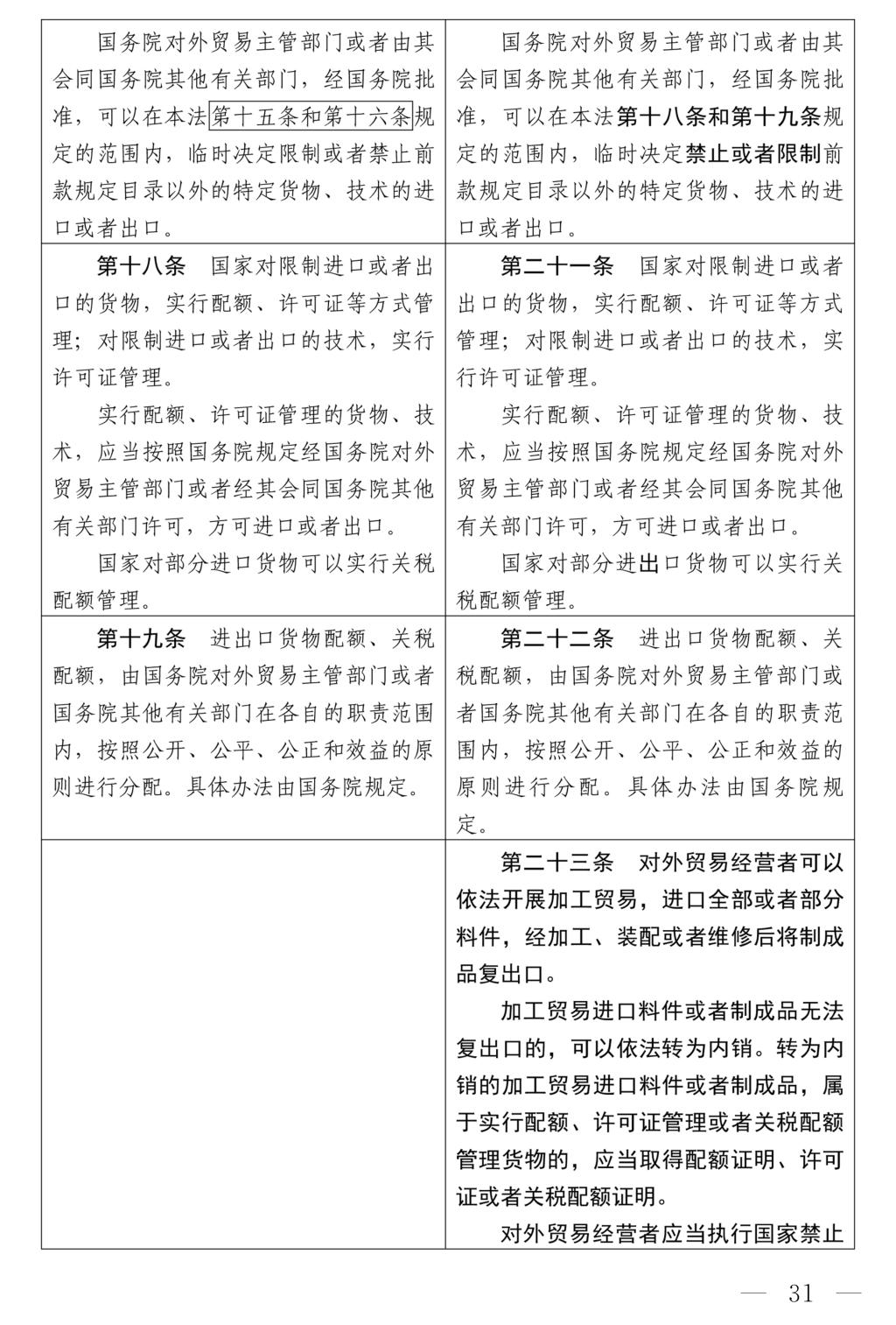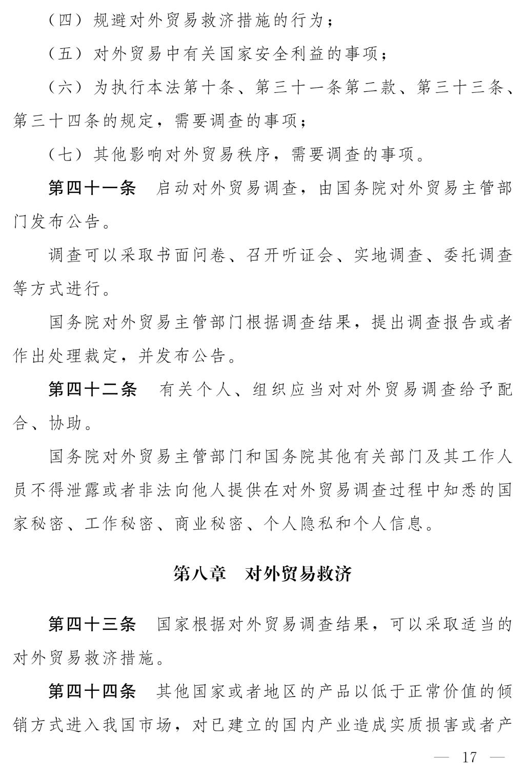 十四屆全國人大常委會第十七次會議對《中華人民共和國對外貿(mào)易法(修訂草案)》進行了審議。現(xiàn)將《中華人民共和國對外貿(mào)易法(修訂草案)》公布,社會公眾可以直接登錄中國人大網(wǎng)(www.npc.gov.cn)或國家法律法規(guī)數(shù)據(jù)庫(flk.npc.gov.cn)提出意見,也可以將意見寄送全國人大常委會法制工作委員會(北京市西城區(qū)前門西大街1號,郵編:100805。信封上請注明對外貿(mào)易法修訂草案征求意見)。征求意見期限為30日。