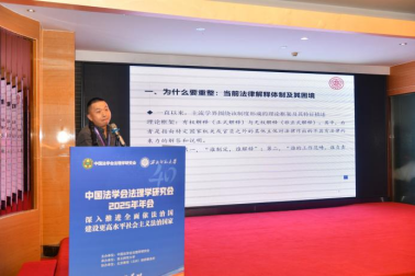 陸俊杰副校長的發(fā)言圍繞“政府權(quán)力與社會權(quán)力相統(tǒng)一”的核心問題,系統(tǒng)闡述了地方法治現(xiàn)代化的轉(zhuǎn)型路徑與合作機制。他首先從中國式法治現(xiàn)代化的宏觀背景出發(fā),指出其具有“后發(fā)型、超大型、數(shù)字型”的特征,并回顧了各地方法治綱要的實踐,指出實踐中存在政府推進與自然演進之間的路徑張力。其次,他重點分析了地方法治變革的雙重動因:一是全球化與數(shù)字化時代帶來的外部環(huán)境變化,包括國際法治互動與數(shù)字治理的機遇與挑戰(zhàn);二是內(nèi)在結(jié)構(gòu)失衡,表現(xiàn)為政府主導(dǎo)與社會參與不足、縱向與橫向權(quán)力配置不協(xié)調(diào)。在此基礎(chǔ)上,他歸納了三種地方法治類型:試驗型、競爭型和承包型,指出其共同問題在于國家主義邏輯過強、社會性要素缺失、缺乏地方性與法治雙重視角。對此,他提出應(yīng)向“合作型地方法治”轉(zhuǎn)向,強調(diào)政府與社會之間的信任與協(xié)同,實現(xiàn)從“控制—依附”到“信任—合作”的范式轉(zhuǎn)換。合作型法治依托社會權(quán)力,其主體包括地方性社會組織、穩(wěn)定性社會群體和自治性社區(qū)組織,功能體現(xiàn)在制約政府權(quán)力、豐富社會資本和生成社會秩序三個方面。最后,他指出合作型地方法治的實現(xiàn)需具備三個條件:開放多元的合作場域(如民主實踐空間、市場經(jīng)濟與信息技術(shù)支撐、地方性文化基礎(chǔ))、深度有序的合作機制(如對話協(xié)商、有序參與、自主治理),以及制度化的集體行動網(wǎng)絡(luò),從而在權(quán)力制約與權(quán)利保障中推動地方法治現(xiàn)代化。