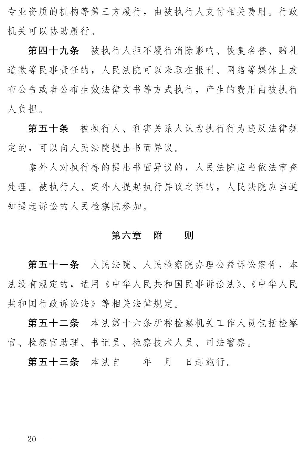 十四屆全國人大常委會第十八次會議對《中華人民共和國檢察公益訴訟法(草案)》進行了審議?,F(xiàn)將《中華人民共和國檢察公益訴訟法(草案)》公布,社會公眾可以直接登錄中國人大網(wǎng)(www.npc.gov.cn)或國家法律法規(guī)數(shù)據(jù)庫(flk.npc.gov.cn)提出意見,也可以將意見寄送全國人大常委會法制工作委員會(北京市西城區(qū)前門西大街1號,郵編:100805。信封上請注明檢察公益訴訟法草案稿征求意見)。征求意見期限為30日。