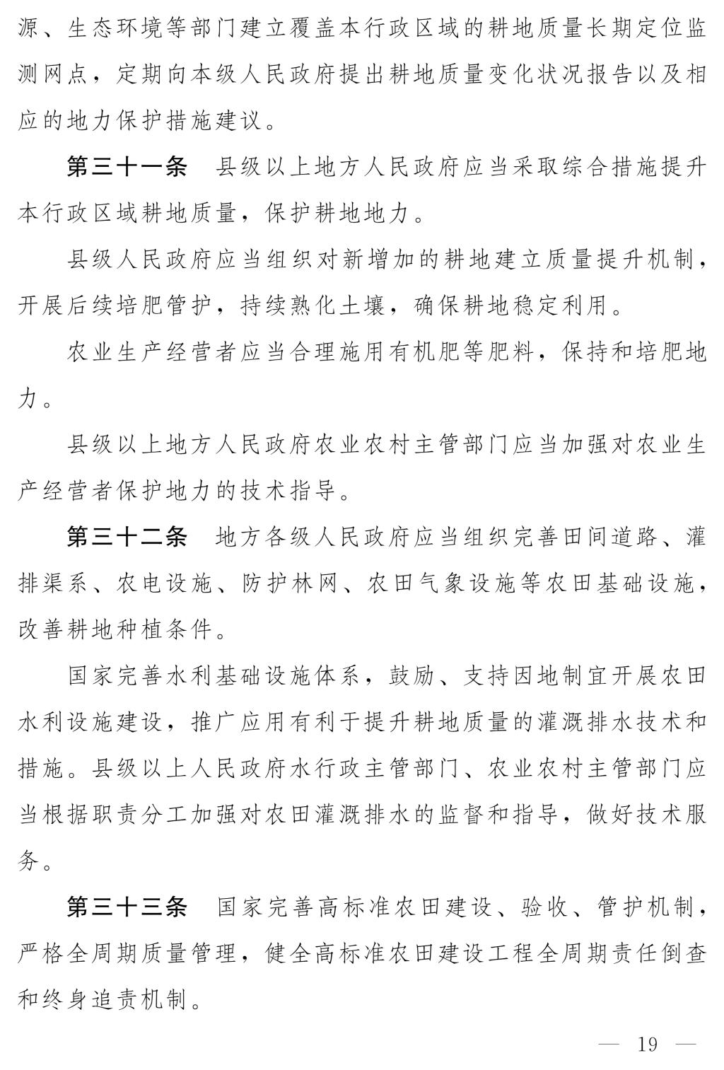 十四屆全國人大常委會第十八次會議對《中華人民共和國耕地保護(hù)和質(zhì)量提升法(草案)》進(jìn)行了審議?,F(xiàn)將《中華人民共和國耕地保護(hù)和質(zhì)量提升法(草案)》公布,社會公眾可以直接登錄中國人大網(wǎng)(www.npc.gov.cn)或國家法律法規(guī)數(shù)據(jù)庫(flk.npc.gov.cn)提出意見,也可以將意見寄送全國人大常委會法制工作委員會(北京市西城區(qū)前門西大街1號,郵編:100805。信封上請注明耕地保護(hù)和質(zhì)量提升法草案征求意見)。征求意見期限為30日。